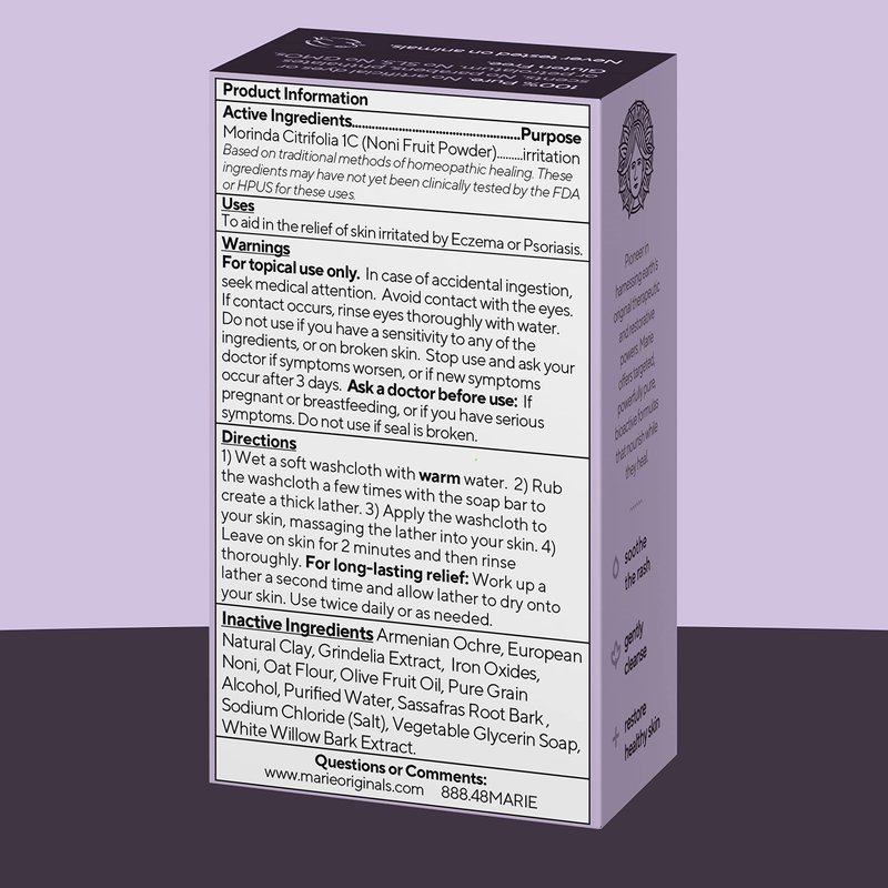 Itchy skin, dry patches, roughness & discoloration are all symptoms of common skincare conditions. The holistic alternative for those looking for a clean skin solution, Marie Originals Eczema & Psoriasis Soap reveals nature's ability to heal. It's 100% Honest, Pure & Powerful! Marie Originals Eczema & Psoriasis Therapy delivers a gentle, cleansing experience while naturally soothing troubled skin. Specially formulated with organic natural ingredients. Using the right soap will not prevent psoriasis or wash the patches away, but it can prevent them from getting worse.