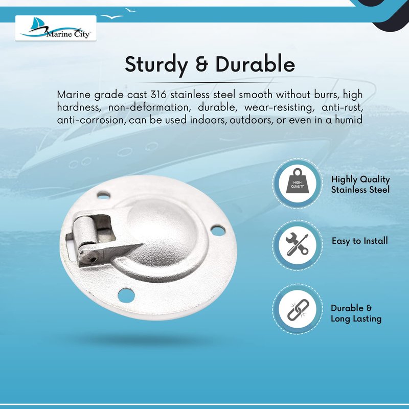 - Package Includes Pack of 4 Marine City Round 316 Stainless Steel Flush Hatch Lifting Ring/Deck Hatch Pull Handle.