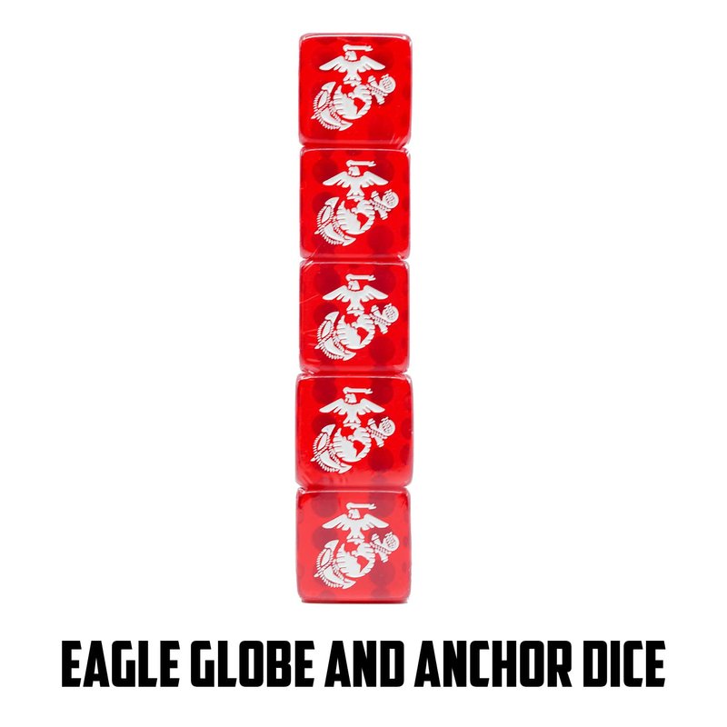 - EXCLUSIVE U.S. MARINES DESIGN: The card backs feature the Marine Corps logo, and instead of traditional card faces, ours display USMC rank insignia – Private First Class through General. These cards are great for retired, active, and current military members. Marine Corps dice display the well-known eagle, globe, and anchor emblem. Show your pride and loyalty to the United States Marine Corps!