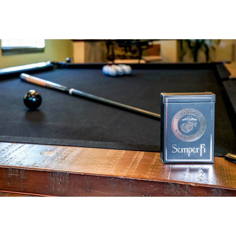 Our U.S. Marine Corps Playing Cards and Dice Set makes a statement at the game table. Inside the premium leather box are 2 decks of professional-grade playing cards and 5 laser engraved dice.