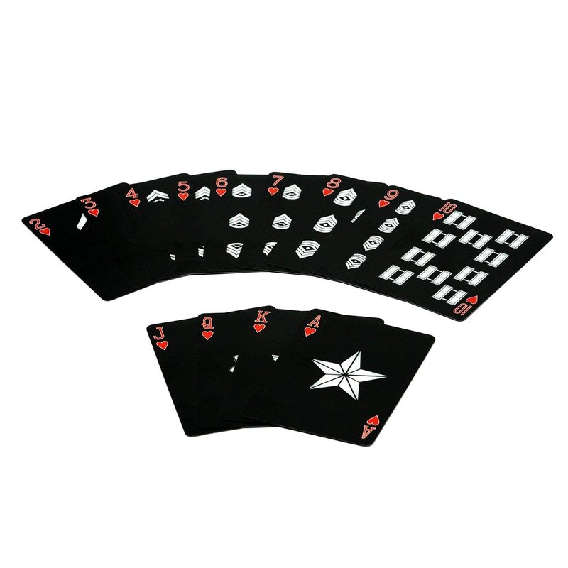 - PROFESSIONAL PLAYING CARDS: Coated, professional-quality Marine playing cards in sleek black feature silver-foil embossed Eagle, Globe & Anchor on the backs and Marine Corps rank insignia on the faces (PFC through General)… the perfect Gung-Ho decks for poker night, blackjack, or game of solitaire.