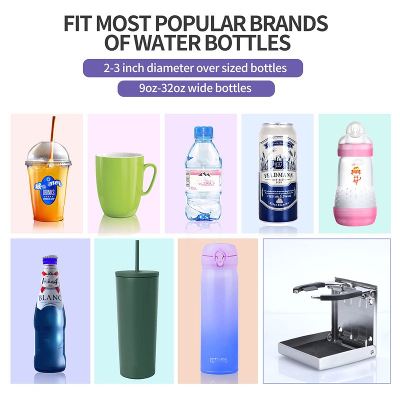 - Adjustable arms hold thin bottles, cans or fast food plastic drink cup that are up to 3 inches in circumference.