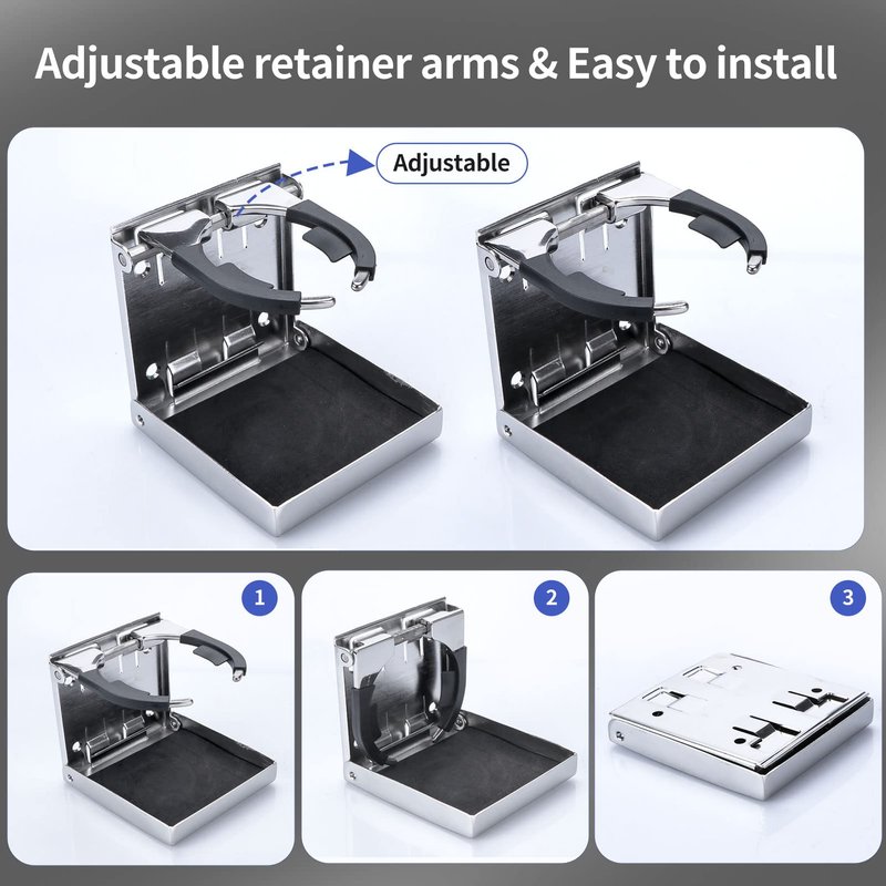 M-ARINE BABY 2PCS Stainless Steel Adjustable Folding Drink Holders Marine/boat/caravan/car
