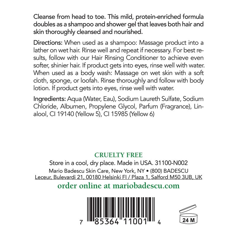 Mario Badescu All Purpose Egg Shampoo for All Hair and Skin Types | Shampoo and Body Wash that Cleanses and Nourishes |Formulated with Egg White Proteins, 8 Fl Oz