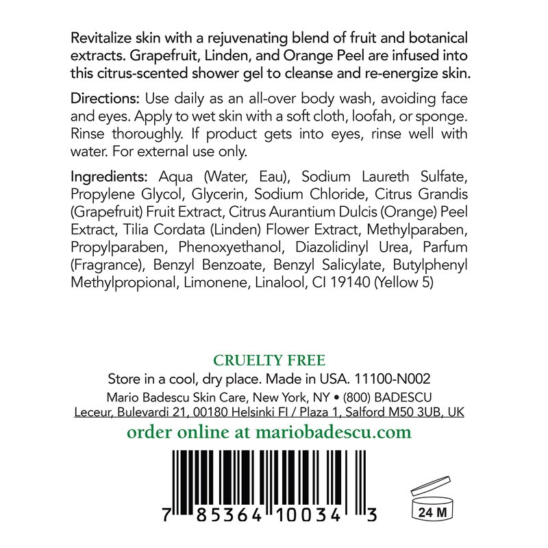 Mario Badescu Citrus Body Cleanser - Lightweight Shower Gel Body Soap with Grapefruit and Orange Peel Extracts - Fresh and Moisturizing Body Wash for Men and Women, 8 Fl Oz