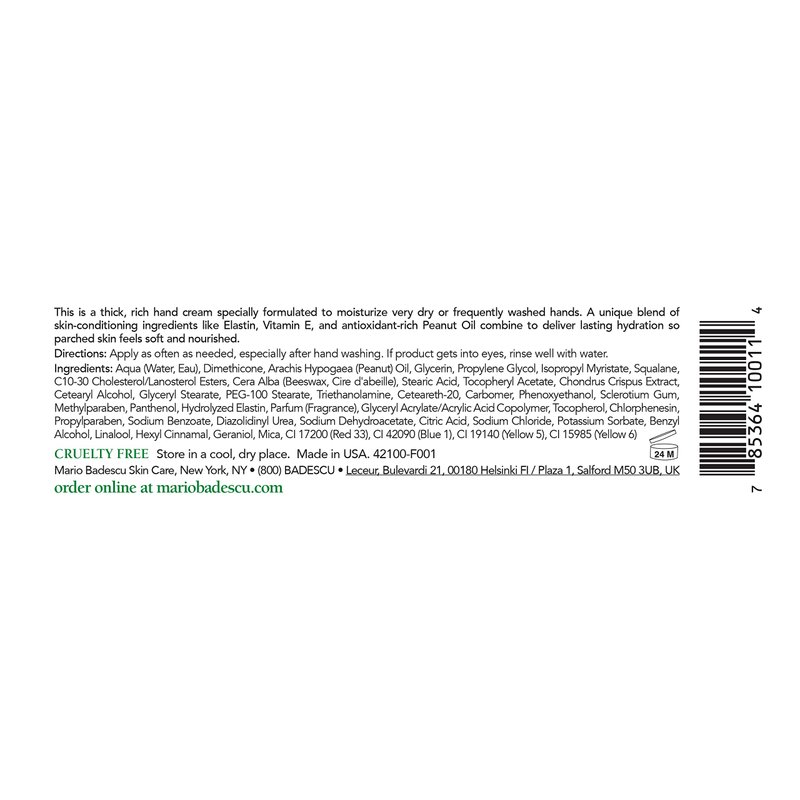 Mario Badescu Elasto-Seamollient Hand Cream - Rich, Thick Hand Lotion for Ultra-dry or Frequently Washed Hands - Hand Moisturizer with Elastin & Vitamins, 4 Oz