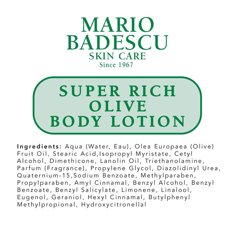 - RICH NOURISHING FORMULA - Hydrate and pamper your skin with the Mario Badescu Lotion enriched with nourishing olive oil, abundant in vitamins and nutrients; The secret to silky and smooth skin