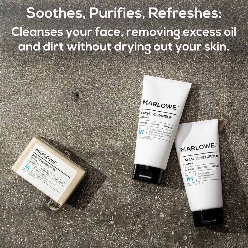 - Soothes, Purifies, Refreshes: MARLOWE. Mens Facial Cleanser is a cut above the rest. Cleanses your face, removing excess oil and dirt without drying out your skin. This face wash is a must-have in your skincare routine