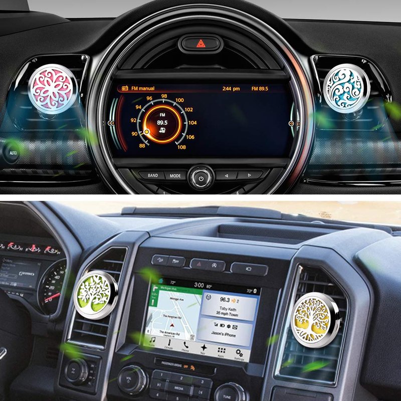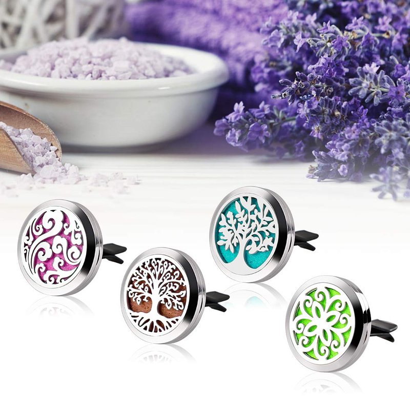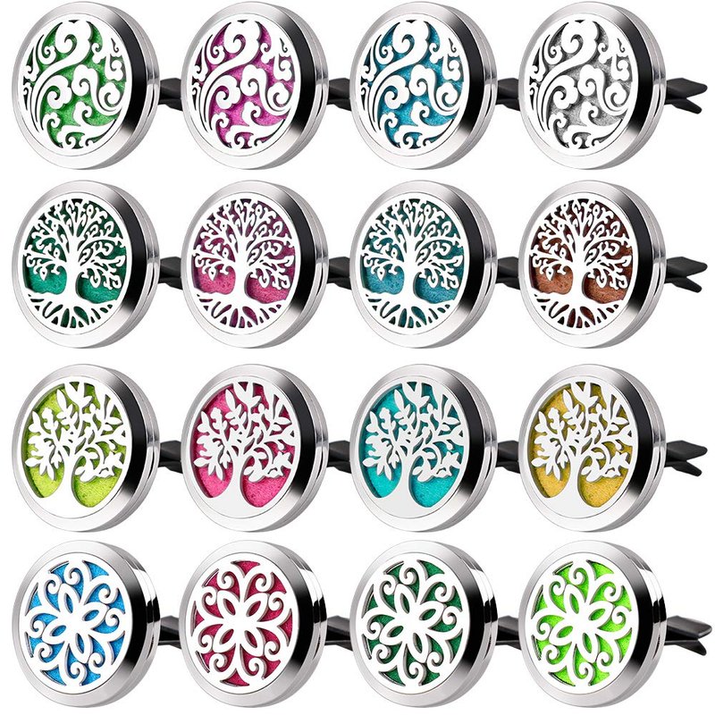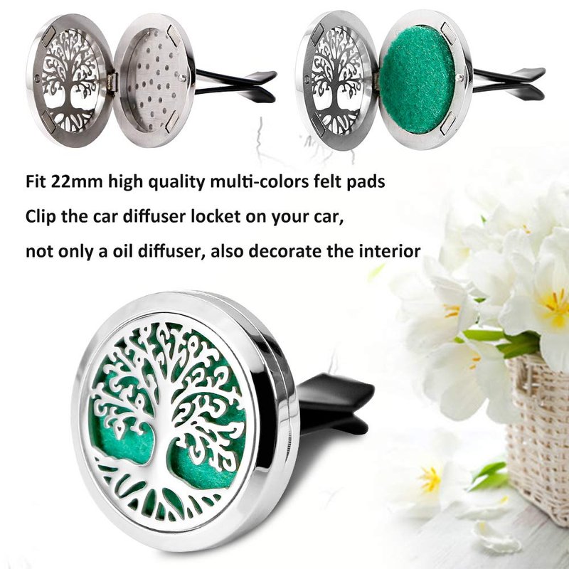 - 【Package Includes】 Value Pack! You will get 4 car air freshener vent clips. 30mm Root Tree, 30mm Leaf Tree, 30mm Cloud and 30mm Flower Diffuser Stainless Steel Box and 40 Felt Pads, 10 colors, 4 pcs each. The car vent clips decor is also an ideal Christmas, birthday gift for family and friends.