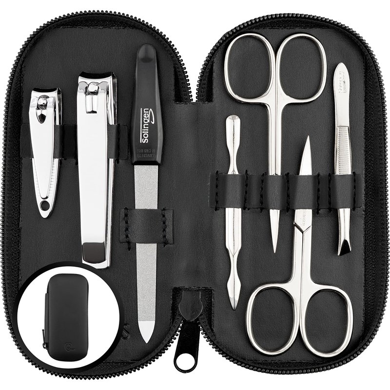 marQus Manicure Set Solingen Made in Germany - 7 piece stainless steel exclusive finger & toe nail clippers set in Nappa black leather case, made in Solingen Germany* (except for clippers)