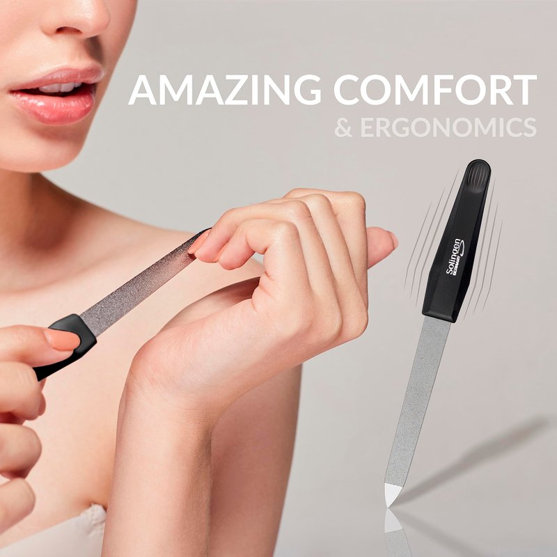- ERGONOMIC DESIGN: Designed with your comfort in mind, our nail files' ergonomic handle fits perfectly in your hand. Enjoy optimal control and comfort for effortless nail shaping and smoothing.