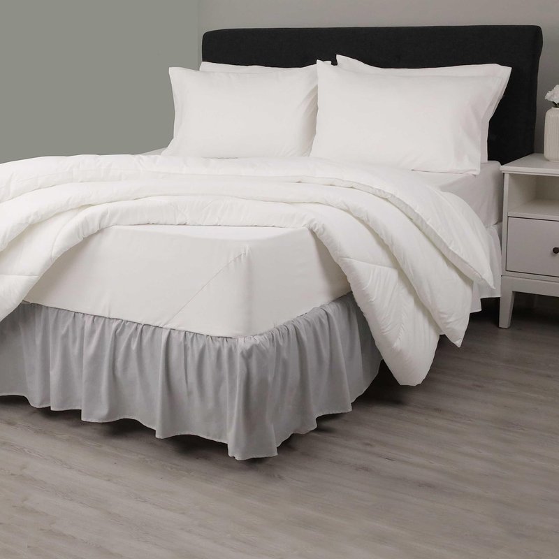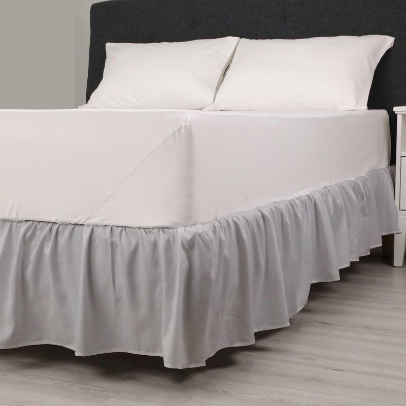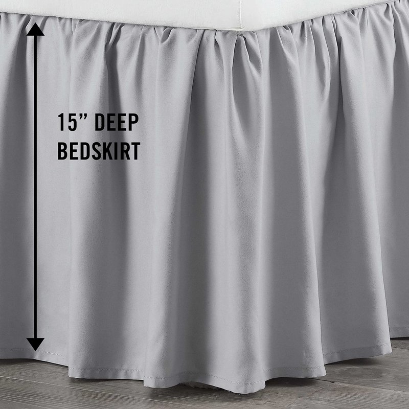 Martex Ruffled Bed Skirt - Easy Fit Lightweight 100% Microfiber Dust Ruffle - Ruffles for Queen Beds - Hotel Quality with 16 inch Tailored Drop - Grey Queen Bed Skirt (Queen, Grey)