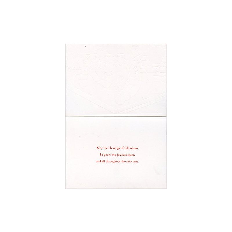 The interior of this Designer Greetings Christmas card design reads: May the blessings of Christmas be yours this joyous season and all throughout the new year. Each card measures 7.875x5.5 inches and is printed on heavy cardstock. The set includes 18 cards and 18 envelopes. The cards have the following special features: gold foil, embossed.