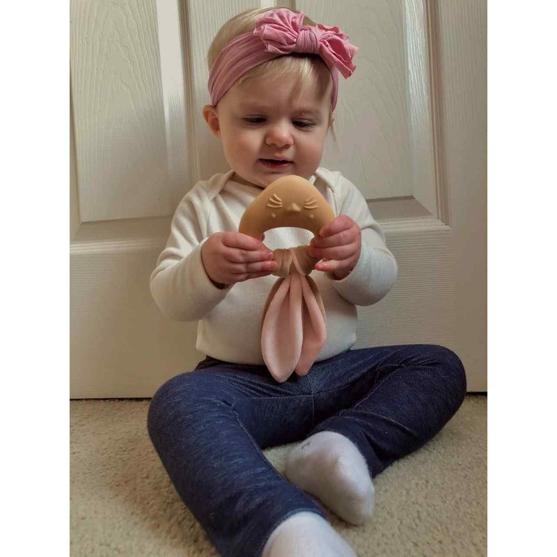 - BABY TEETHER: Adorable combo of soothing molded silicone and super soft fabric, comforts teething babies and provides sensory stimulation