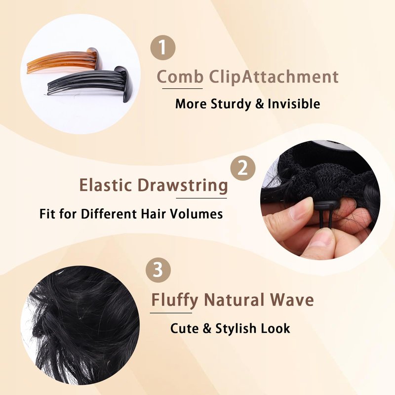 - Practical Design:The Drawstring Comb Clip design is not only sturdy, invisible & comfortable, it can also be detached into a drawstring Bun and a comb clip. Available for 2 wearing ways: The comb clip can be attached directly (suitable for short thin hair); or the comb clip can be removed and secured with a drawstring