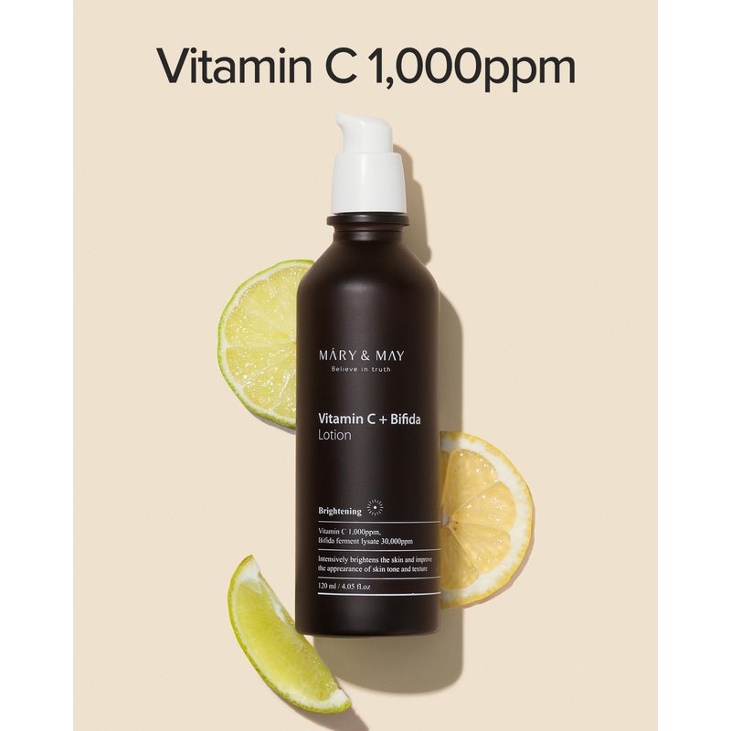 Mary&May Vitamin C + Bifida Lotion, 30,000ppm Bifida fermentation with 1,000ppm Vitamin C to brighten dull skin and moisturization 4.05 fl oz