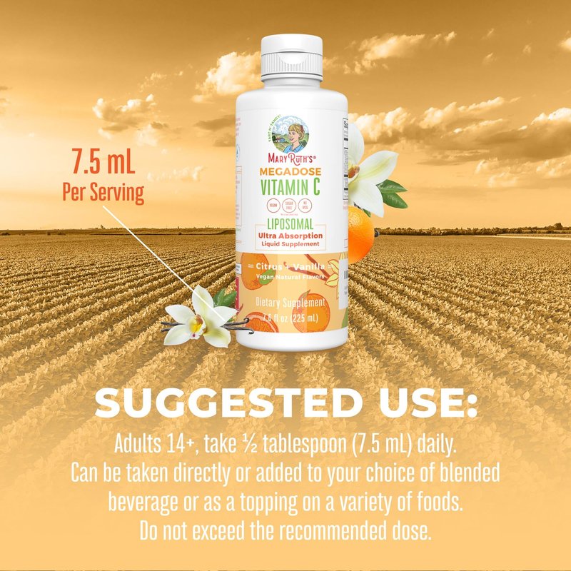 MaryRuth Organics Liposomal Vitamin C | Immune Support Supplement | Vitamin C 500mg | Megadose Vitamin C Supplement | Skin Care | Liquid Vitamin C | Vitamin E | Vegan | Non GMO | 30 Servings
