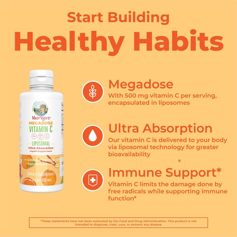 - Vitamin C 500mg: If you’re interested in megadosing Vitamin C, try this liposomal-encapsulated vitamin C! With 500 mg vitamin C per serving, encapsulated in liposomes, your body may better absorb this megadose. Our liposomal delivery system works by encapsulating vitamins into liposomal structures, allowing them to be easily absorbed in the gut.
