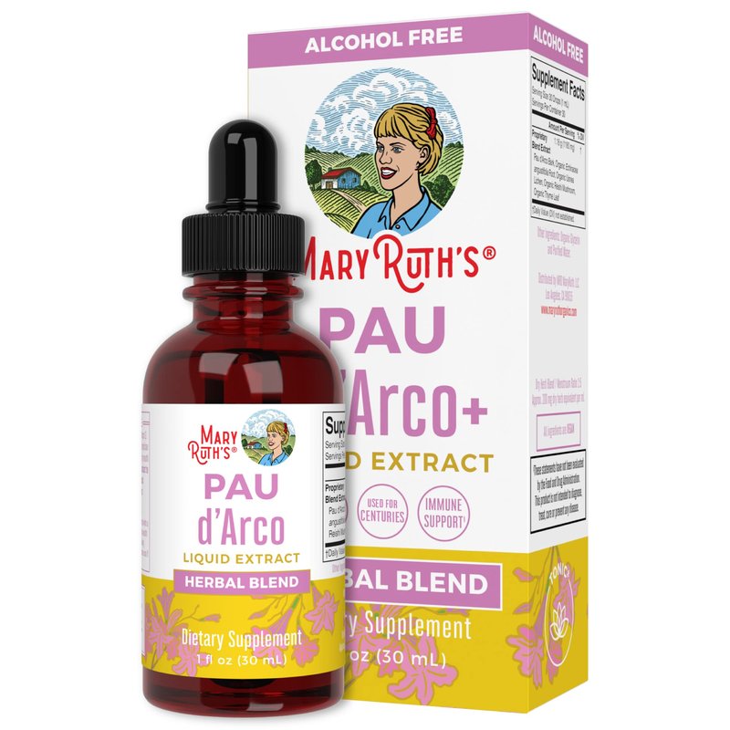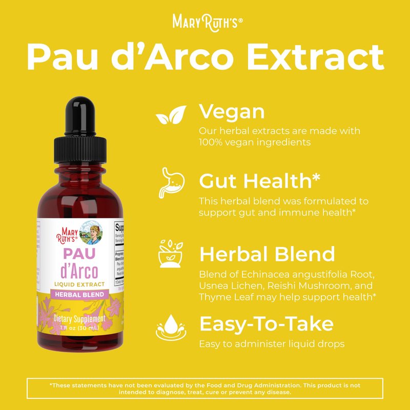 MaryRuth Organics PAU d'Arco Bark Liquid Herbal Supplement | Immune Support, Digestive & Gut Health | Echinacea, Usnea Lichen, Reishi Mushroom, Thyme Leaf | Vegan, Non-GMO | 1 Fl Oz, 1 Month Supply