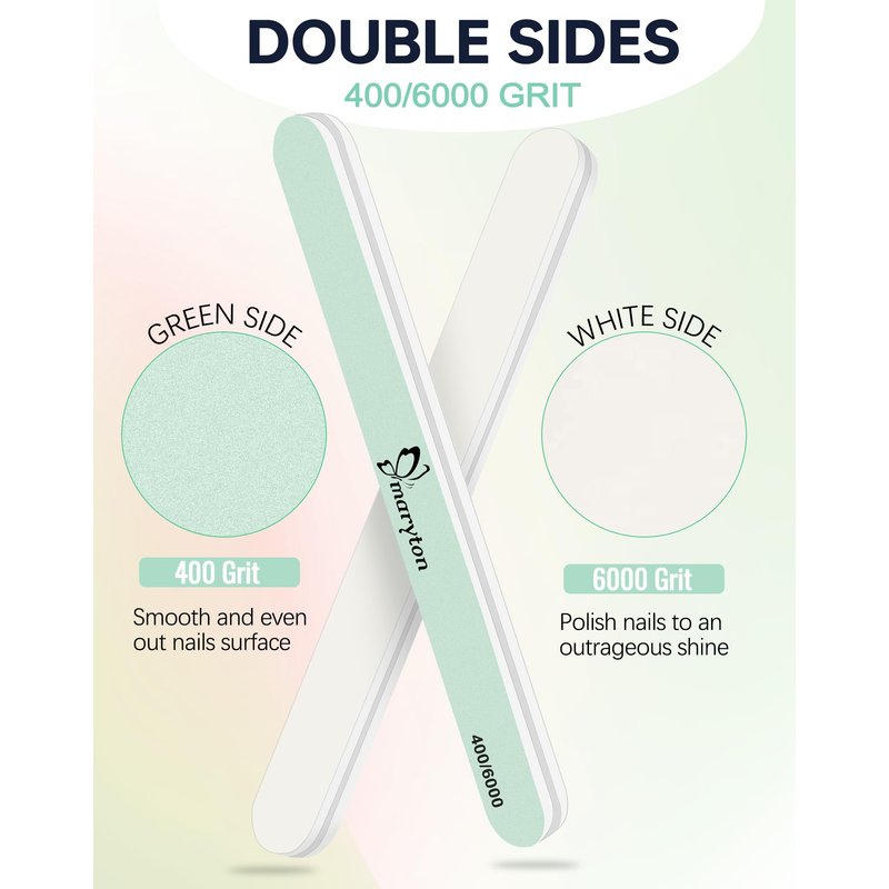 - Easy to Use – Get a smooth glass-shine in seconds! First, use the GREEN side (400 Grit) to smooth and even out nail surface; Second, use the WHITE side (6000 Grit) to shine nails to an attractive shine.