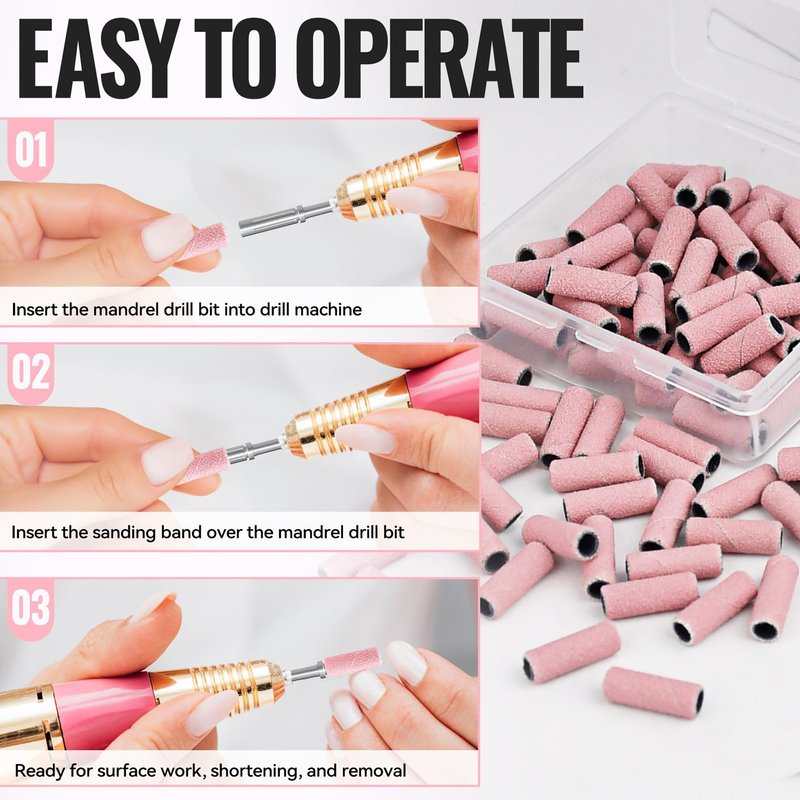 - Easy to Use – The small mandrel bits are compatible with most 3/32" nail drill machines. Simply place a small sanding band over the small mandrel bits and gently apply pressure to the surface of nail bed. Suitable for both manicures and pedicures, working on natural and artificial nails.