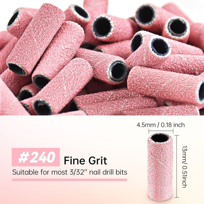 Maryton Sanding Bands for Nail Drill, 50 Pcs Small Nail Sanding Files with 3.1mm Mandrel Bits, 240 Fine Grit for Natural Acrylic Nails Gel Manicures and Pedicures