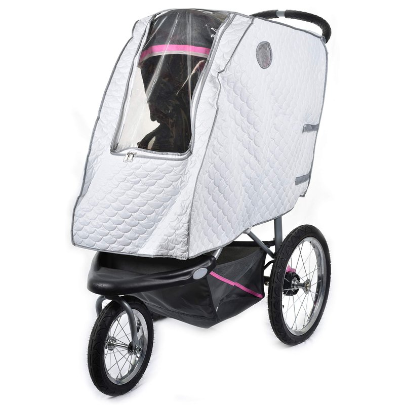 Masirs Baby Stroller Rain Cover - Universal Size, Provides Extra Warmth & Shields Child from Wind & Rain. Mesh Material for Ventilation & Reflective Trimming for Night Visibility. (White, Quilted)