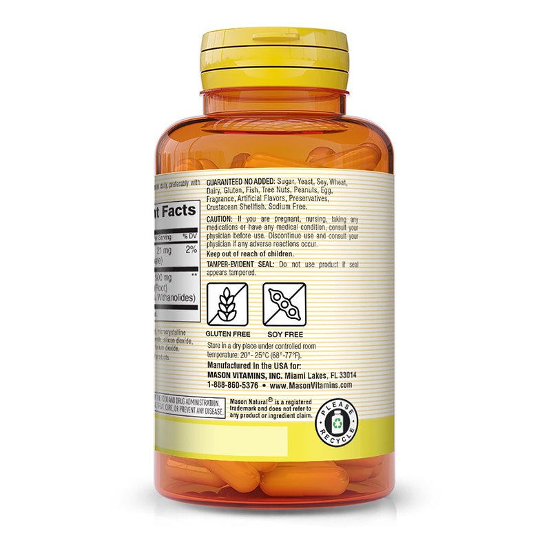 MASON NATURAL, Ashwagandha 500 mg, Adaptogens for Men and Women, Herbal Supplement, 180 Day Supply