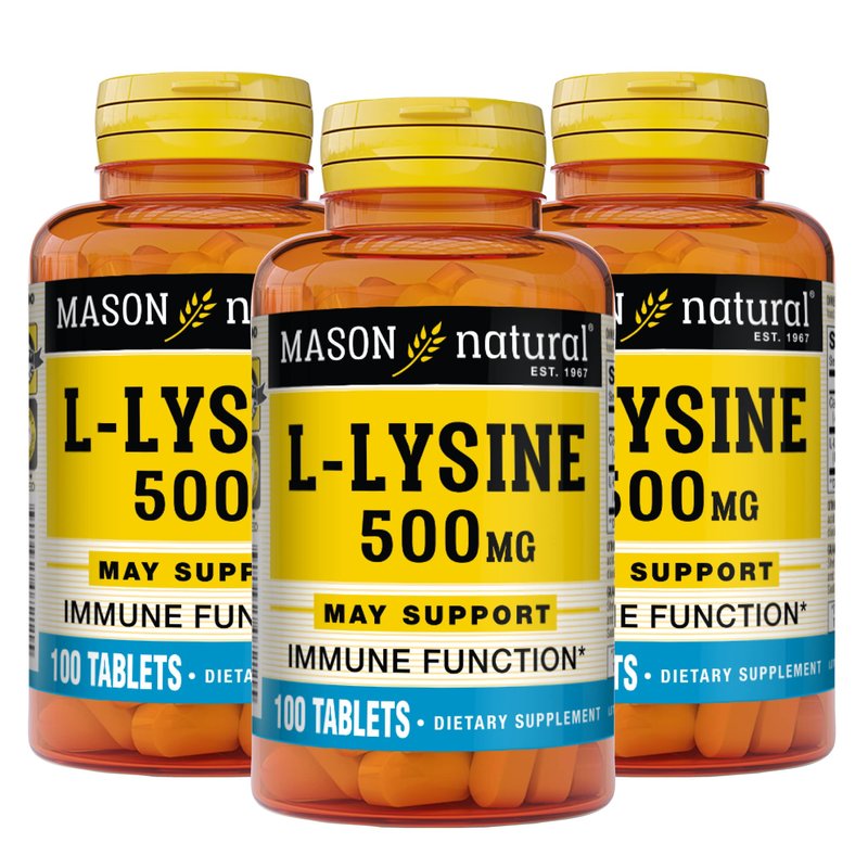 MASON NATURAL L-Lysine 500 mg with Calcium - Improved Immune Function, Enhanced Nutrient Absorption, Essential Amino Acid, 100 Tablets (Pack of 3)
