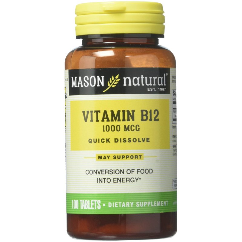 - Mason Natural Vitamin B12 Quick Dissolve sublingual tablets contain 1000 mcg of B12 and conveniently dissolve under the tongue for quick absorption in the bloodstream. B12 vitamin may help support the normal function of the cardiovascular, pulmonary, and central nervous systems.