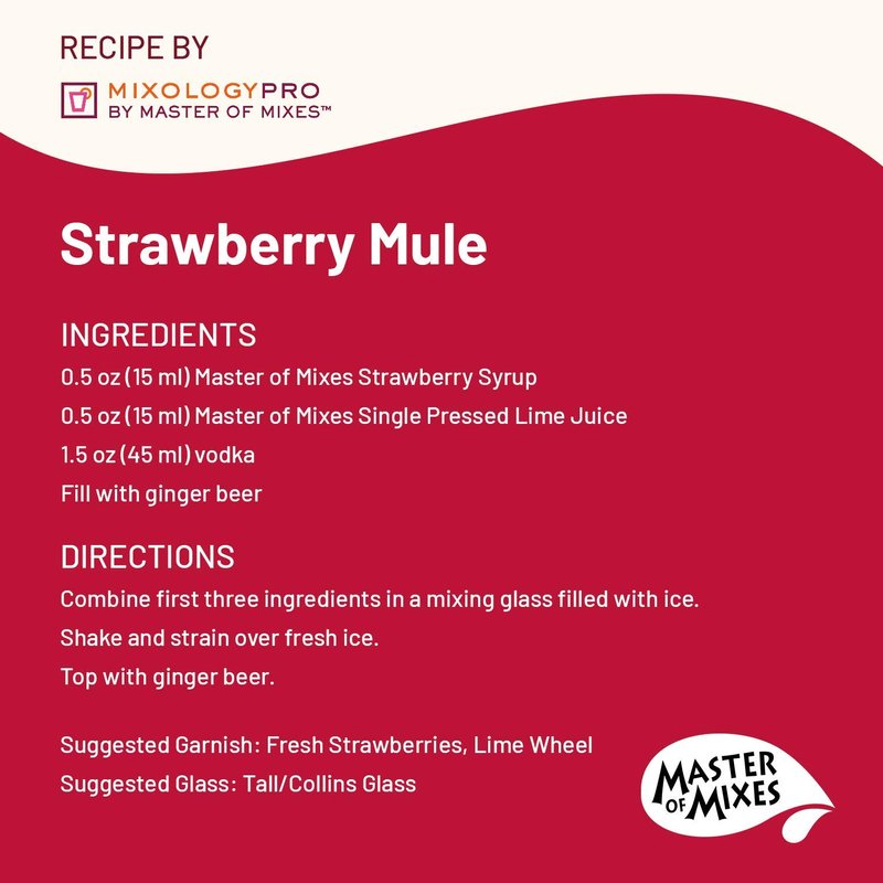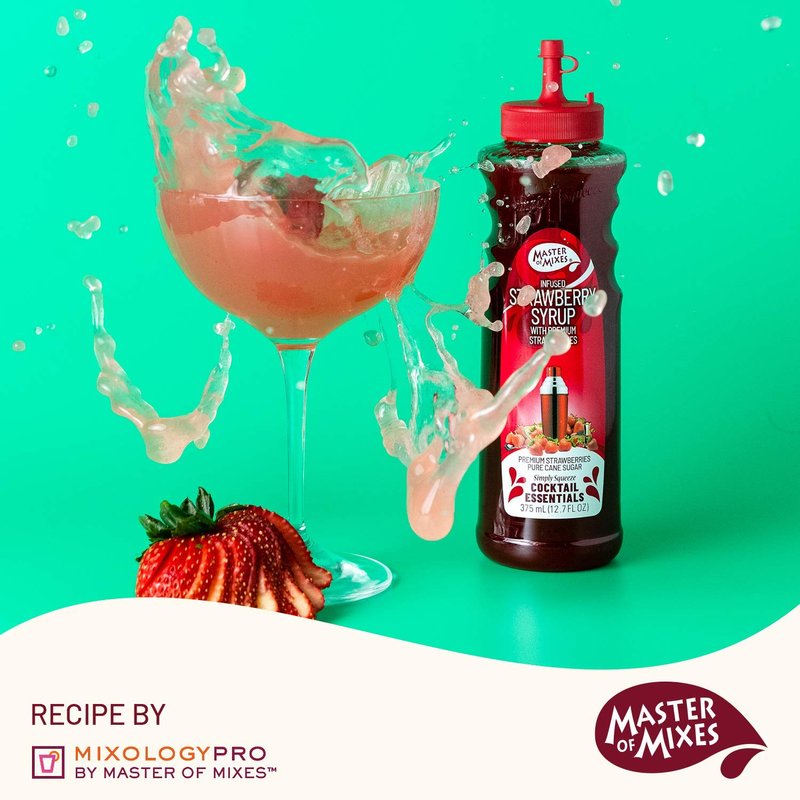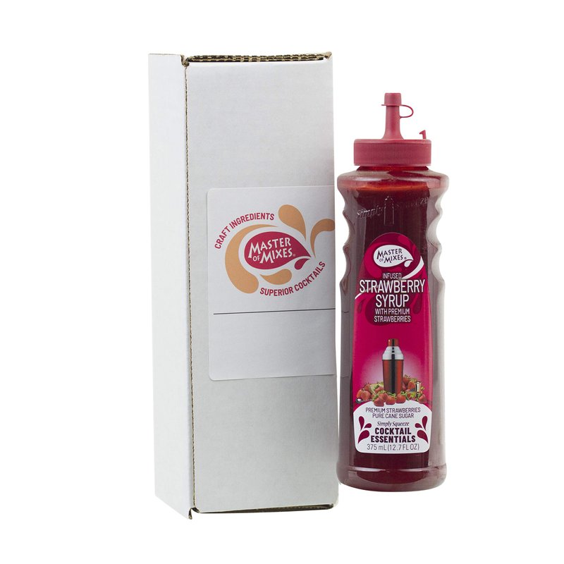Master of Mixes Cocktail Essentials Infused Strawberry Syrup, 375 ML Bottle (12.7 Fl Oz), Individually Boxed in Ecommerce Protective Packaging