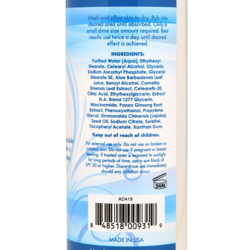 - Formulated with Vitamin C: This natural skin lightening vitamin inhibits enzymatic pathways that stops the formation of melanin, the natural pigment that gives your skin its color, including those of your dark marks, age spots and other hyper pigmented concerns that you have with your skin. Other natural ingredients such as ginseng, green tea extract and aloe aid in creating a soothing and hydrating formula.
