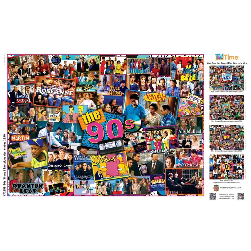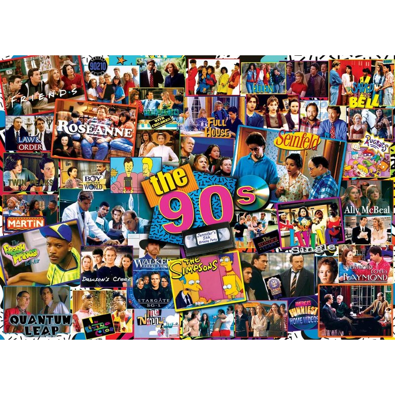 - FLASHBACK TO THE 90’s PUZZLE: Pop a bowl of popcorn and enjoy while reminiscing on the iconic 90’s television shows of crime dramas, comedies, teen sitcoms, mysteries, animated kids programs, and more; makes a delightful gift for yourself or a puzzle enthusiast raised in that generation