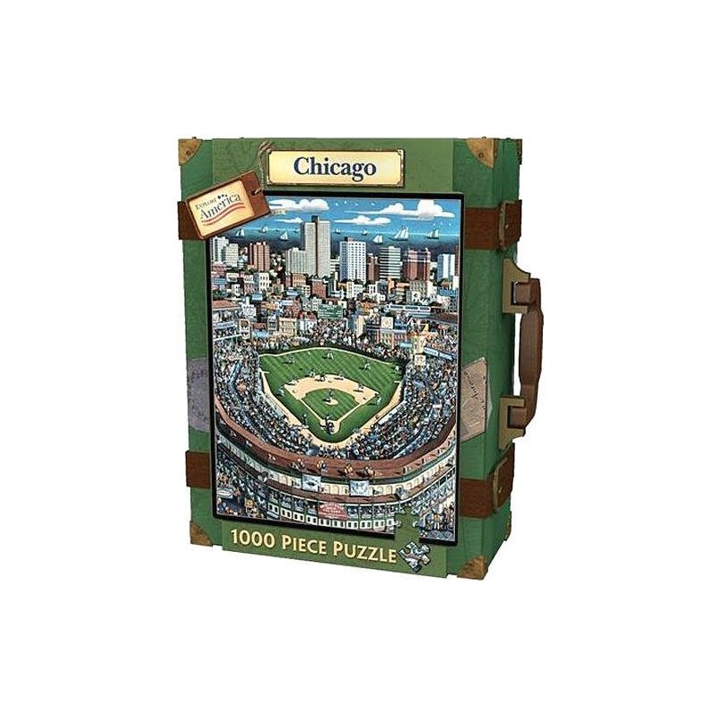 Chicago - 1000 pieces.Artist: Eric Dowdle, Dimensions: 19.25"x26.75".Comes in a Suitcase.