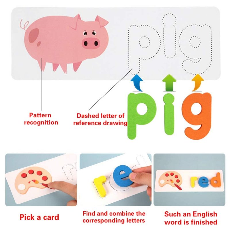 MASTOUR See and Spell Learning Toys,Matching Letter Game Words for Kids,Educational Learning Toys for Preschool Kindergarten 3-7 Year Old Girls Boys (28 Cards+52 Letters) +1