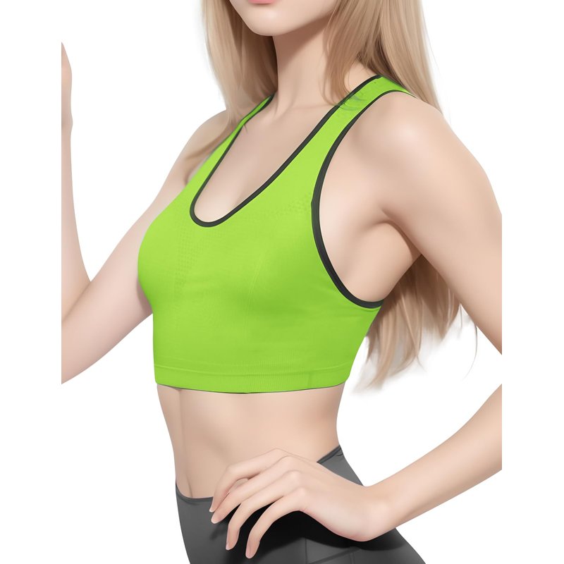 Match Womens Sports Bra Wirefree Seamless Padded Racerback Yoga Bra for Workout Gym Activewear with Removable Pads #001(1 Pack of 3(Black-Bright Green-Gray Brown),L)