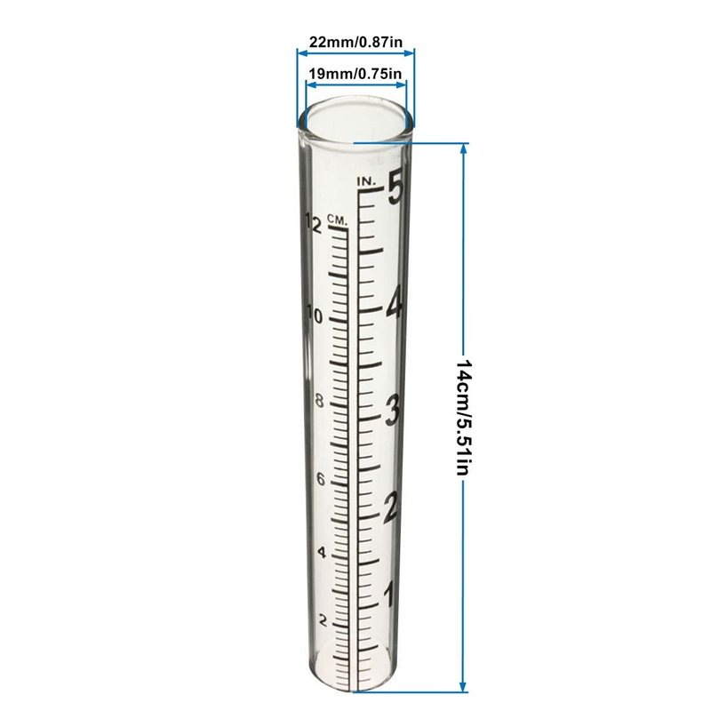- Clear color, Crafted of durable glass. Package: 2 x 5" Rain Gauge Tubes