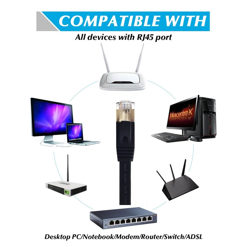 - Compatibility: Cat 7 ethernet cable 50 ft for game room is compatible with Cat6/Cat5/Cat5e rj45 ethernet cable fast. Provide universal connectivity for Xbox One, Xbox 360, Switches, Routers Modems, PS3, PS4, PS5, WiFi,Computer, Laptop, Printers, Network Printers, Playstation 5, Network Attached Storage Device, ADSL, NAS, VoIP phones and more