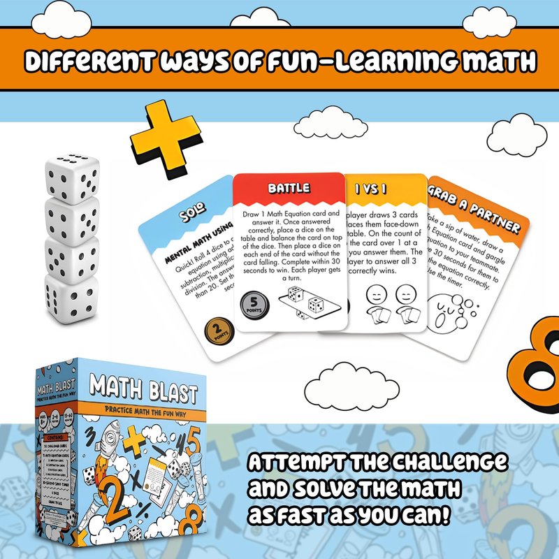 - Boost mental math skills: Improve multiplication, division, addition, and subtraction while having fun; suitable for kids aged 8-12 and older; supports 2-6 players.