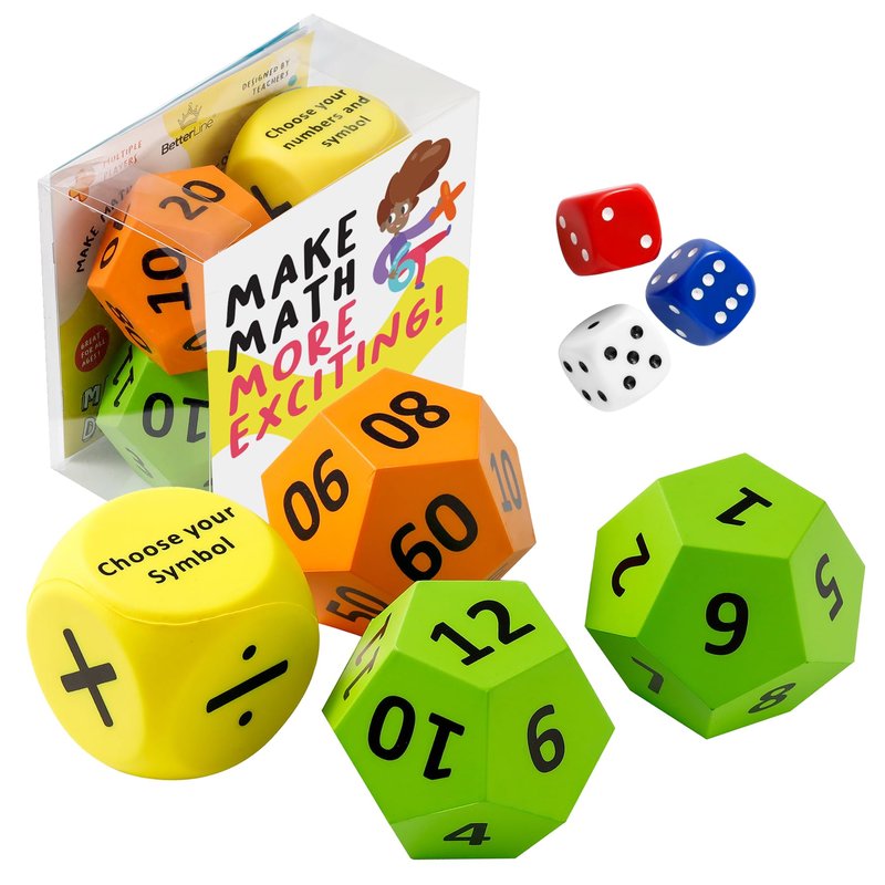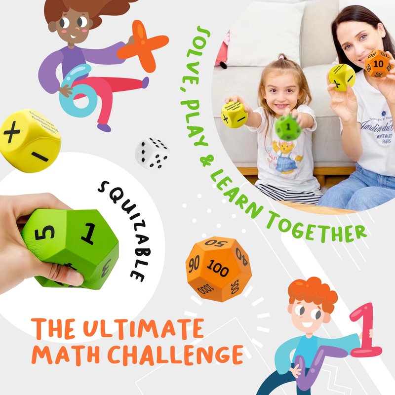 - The Ultimate Math Game Gift: Our Complete Game Set includes 2 Green Target Dice, 1 Orange 12-Sided Dice, 1 Yellow Symbol Dice, 3 Scoring Dice, an easy-to-understand instruction booklet, and a storage bag for easy cleanup. It's all you need for a fun mental math game. Perfect for birthdays, holidays, and math lovers. A great addition to any home or classroom