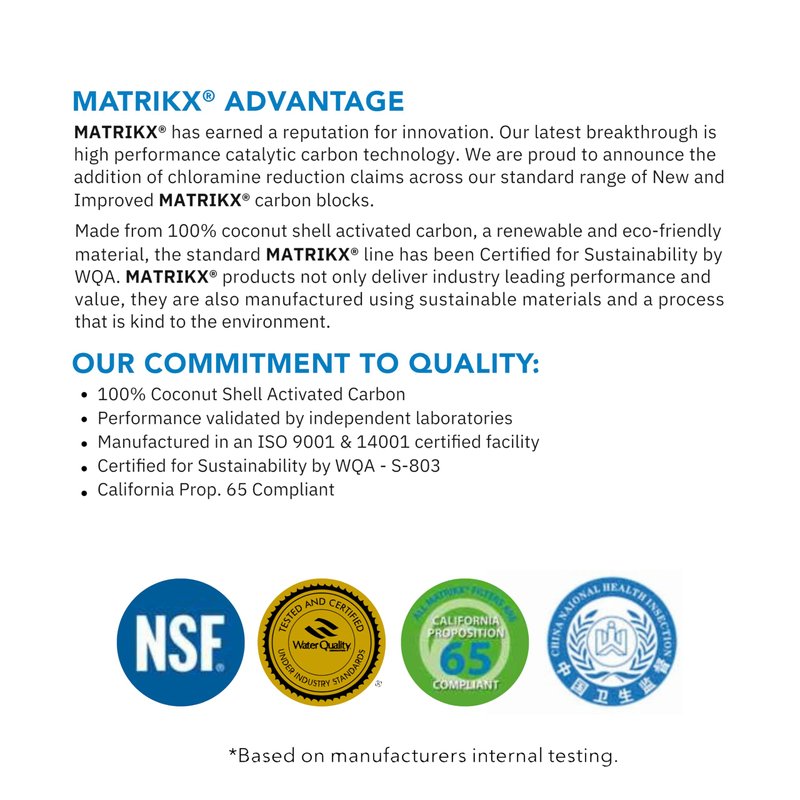 Matrikx 10 inch CTO Carbon Block Filter now with Chloramine Reduction, 2.5 inch x 10 inch, 32-250-10-MATRIKX, Gray