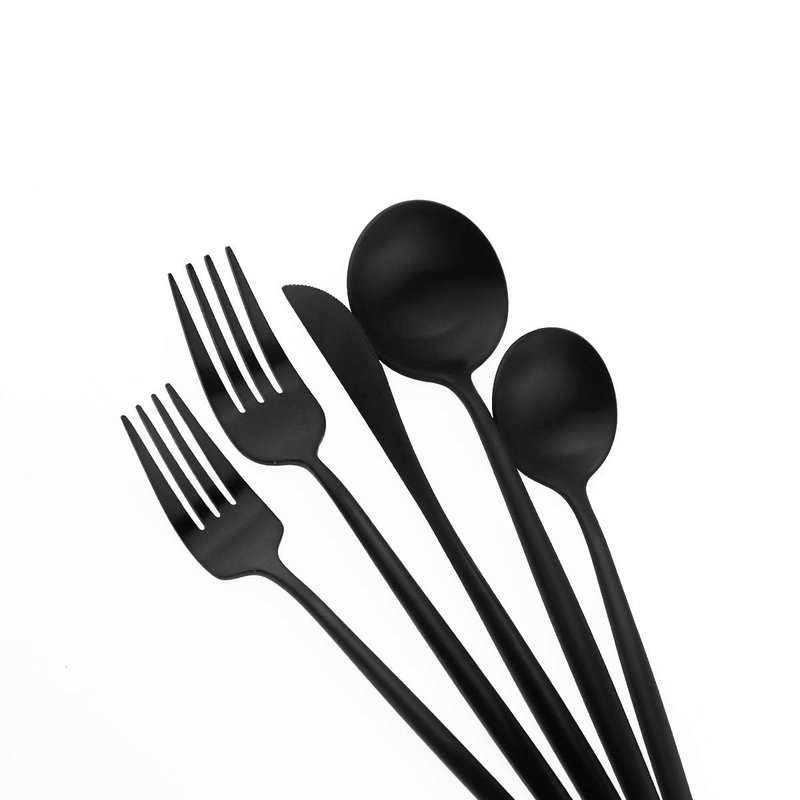 Matte Balck Silverware Set,Gugrida 5-Piece 18/10 Stainless Steel Satin Finish Flatware Set,Kitchen Utensil Set,Tableware Travel Cutlery Set for Camping Office or School Lunch, Dishwasher Safe