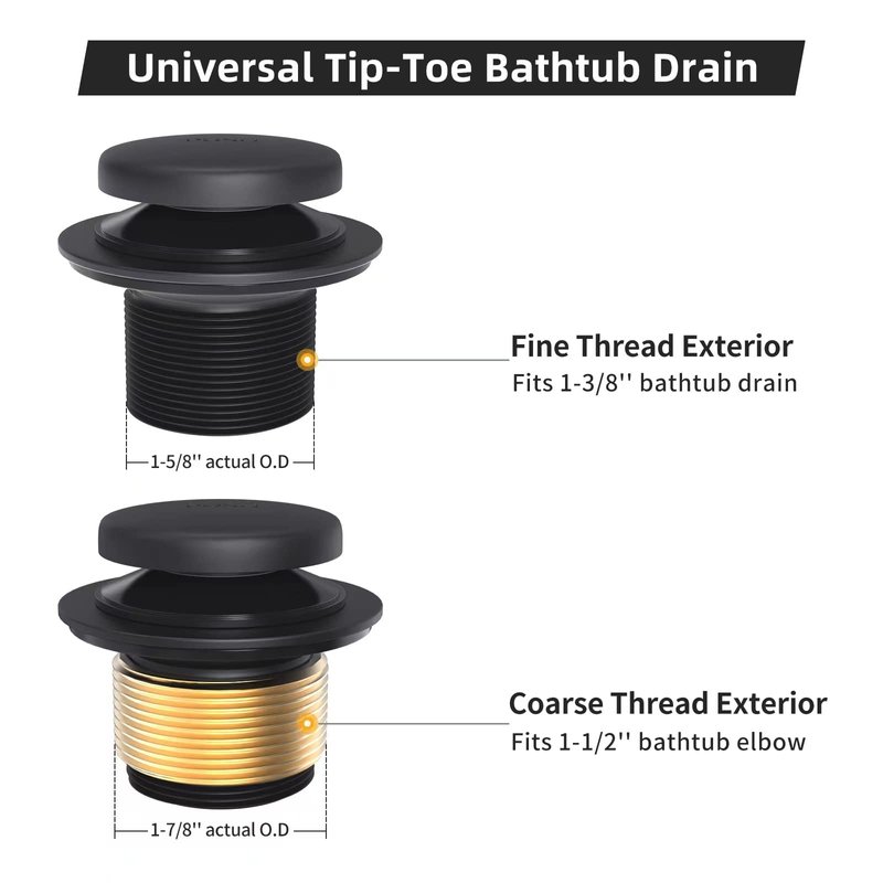 Matte Black Bath Tub Drain and Overflow Kit, Universal All Metal Tip-Toe Bathtub Drain Replacement Kit with Fine/Coarse Thread