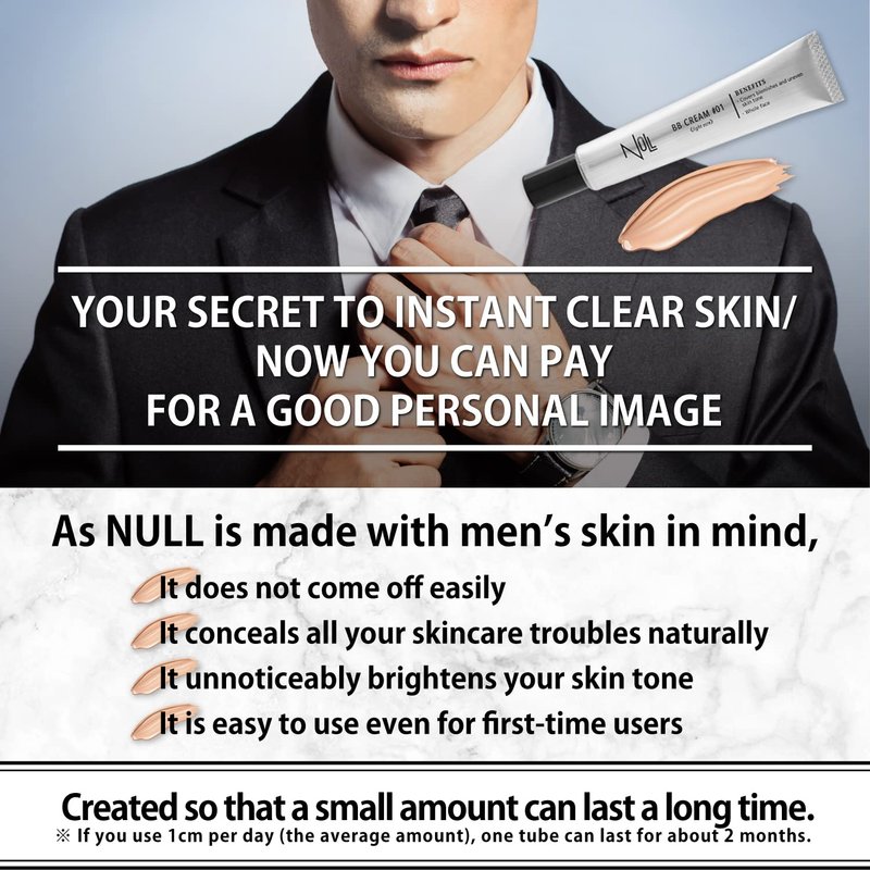 [Matte Finish] NULL mens BB Cream, Mens concealer, Tinted Moisturizer broad spectrum SPF30 PA++, CC cream, Revitalising Nourishing Tone Up Cream, Natural Cover, 0.7oz Made in Japan (Light Ochre)