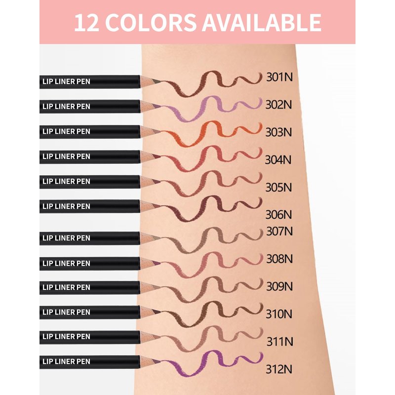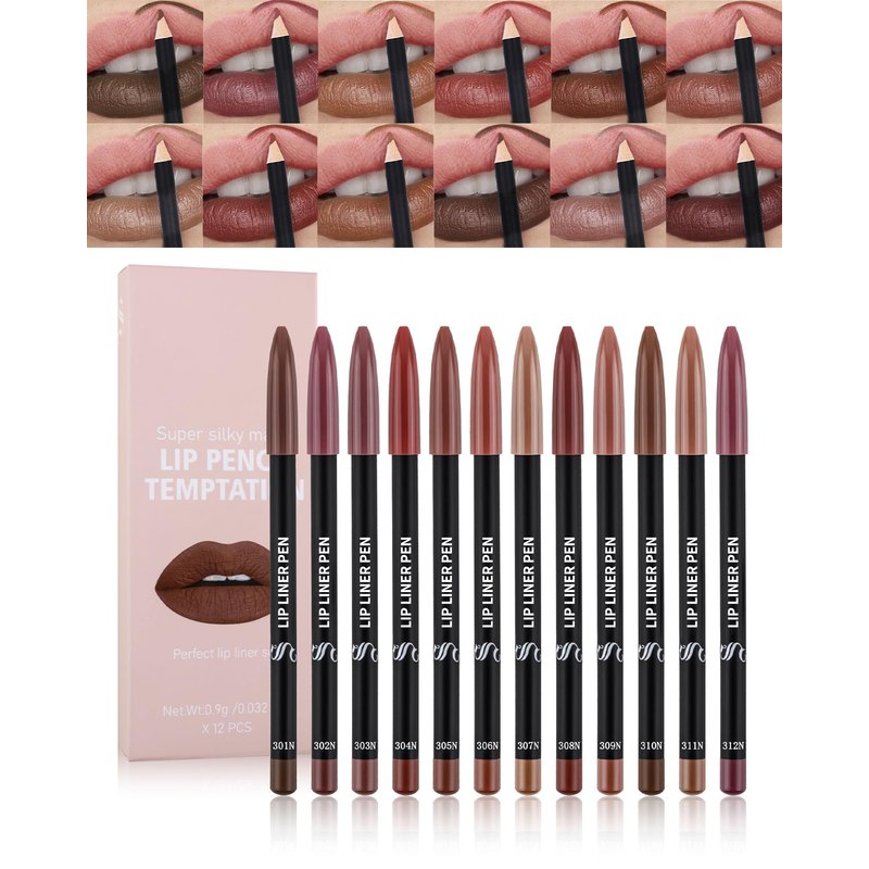 - 12 Colors Lip Liner Pencil Set - The lip liner pencil set has collected 12 most popular colors, rich in color. Lip liner has a natural wood body with soft and smooth creamy texture, glides on smoothly and defines your lips with a single stroke for a perfect look, making it easy for you to have full, sexy lips.