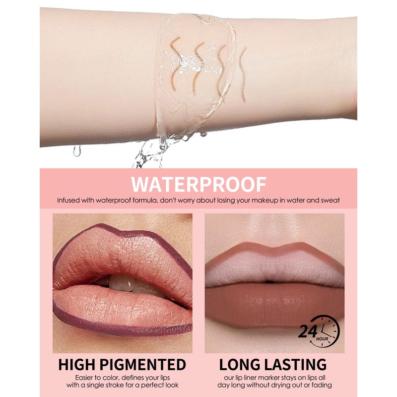 - Long Lasting & Waterproof Formula - Whether you eat or drink, it won't transfer easily. Our lip liner marker stays on lips all day long without drying out or fading, the long-lasting, waterproof, non-sticky texture allows you can fully show your charming lip in anytime. Say goodbye to frequent touch-ups and enjoy a happy life.