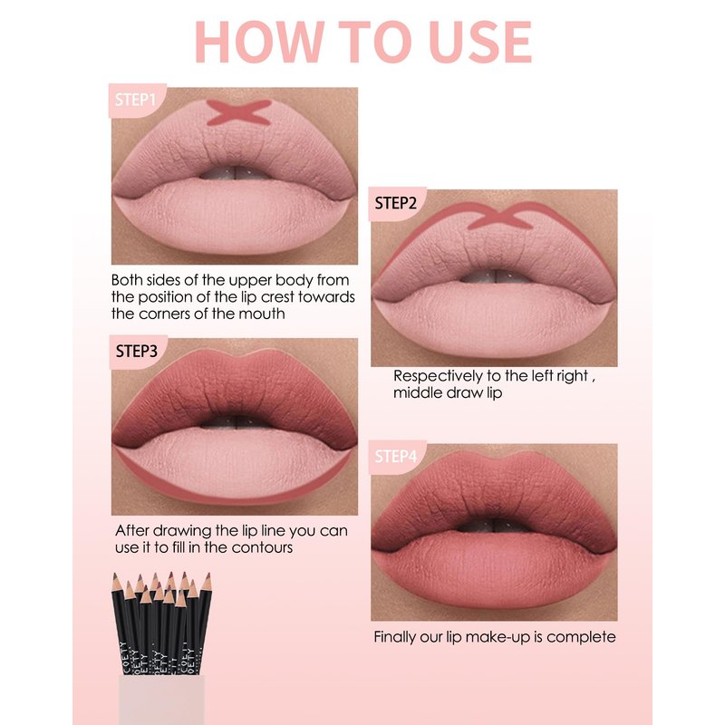 - Matte Lip Liner Pencil - Our lip liner pencil lightweight texture delicate and easy to apply, refill of these lip liners soft, comfortable, not hard, and easier to color. Glides on effortlessly, working from the center of the lips outward, trace along the outer edge of the lip line, giving you instantly attractive lips.