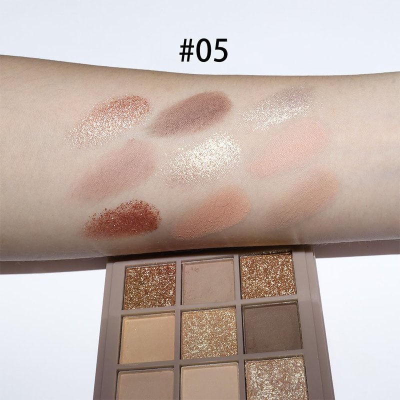 Matte Shimmer Nude Brown Eye Shadow Palette Makeup,Eyeshadow Long Lasting Waterproof Cruelty-Free , 9 Blendable Shades in Smooth Matte and Shimmer Finishes with Gorgeous Pearls for Girls (05#)