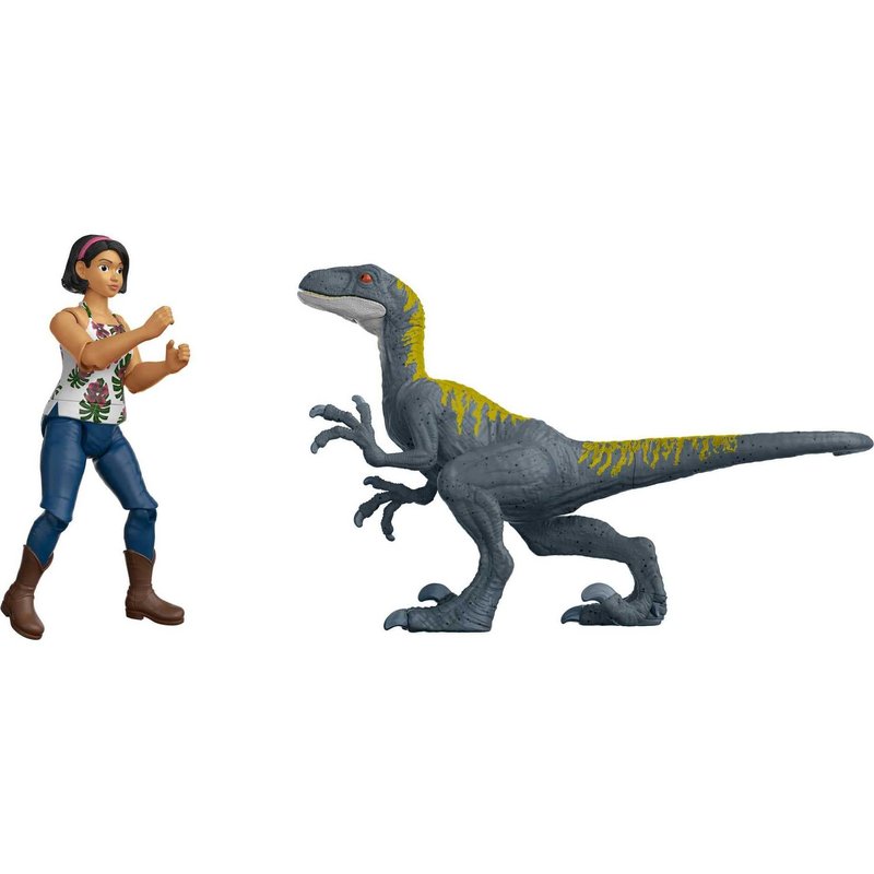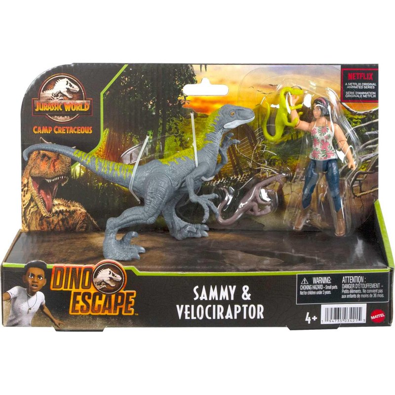 - Gripping storytelling comes with this pack that includes a Velociraptor and a figure of the lovable outgoing Sammy Gutierrez from Jurassic World: Camp Cretaceous as well as 2 clingy Compy accessories.