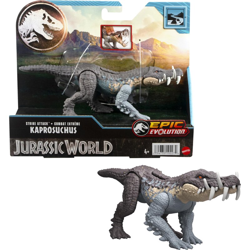 Mattel Jurassic World Strike Attack Kaprosuchus Dinosaur Toy with Single Strike Action, Movable Joints, Action Figure Gift with Physical & Digital Play